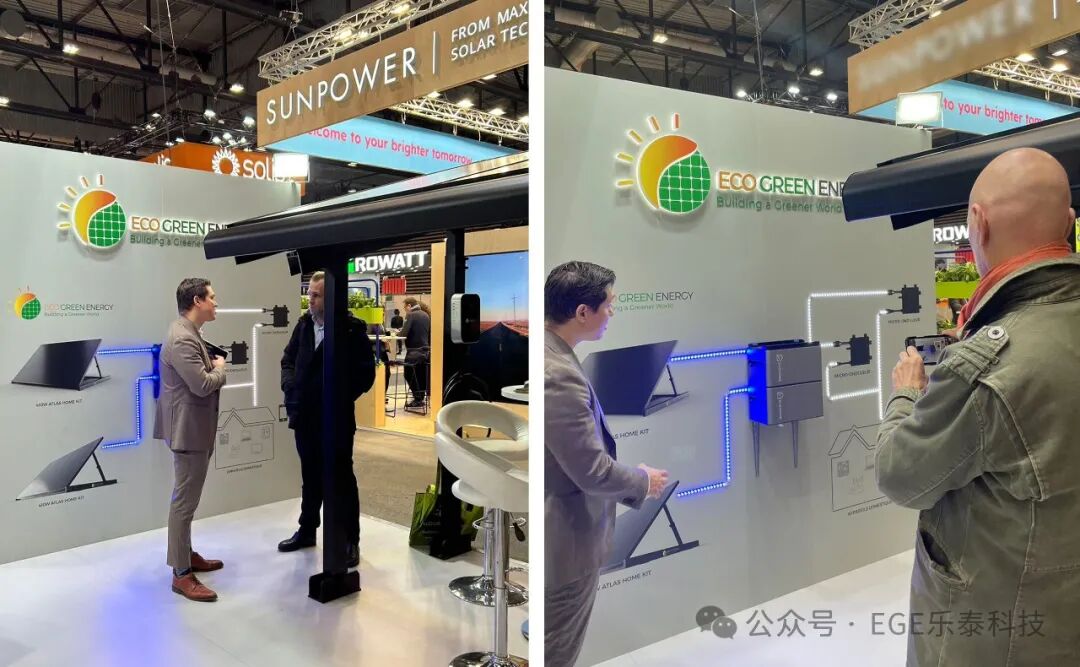 此外,大家对我们的储能类产品也非常感兴趣。我们在现场向大家展示了全面的家庭能源解决方案:EGE HOME储能产品+HomeKit阳台光伏+光伏充电车,形成一站式能源解决方案。