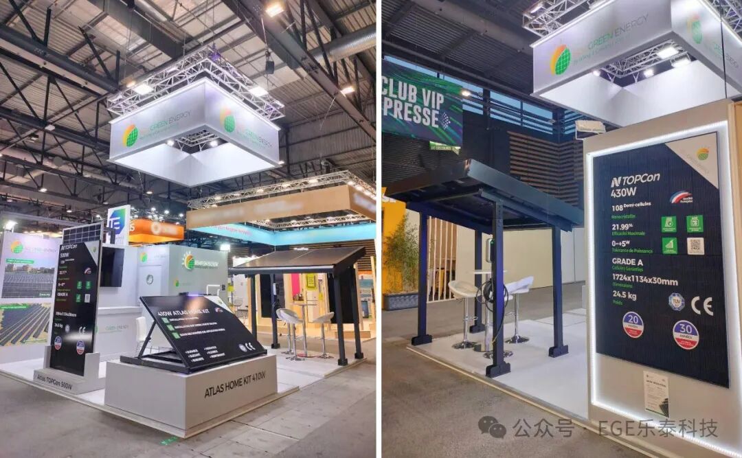 该款光伏车棚采用乐泰科技高效500w全黑组件,这种结合美观与实用的设计引起了参观者的兴趣和驻足观赏。凭借较高的转化效率、更低的度电成本、衰减低、弱光表现优等优点,一经展出便受到热捧。